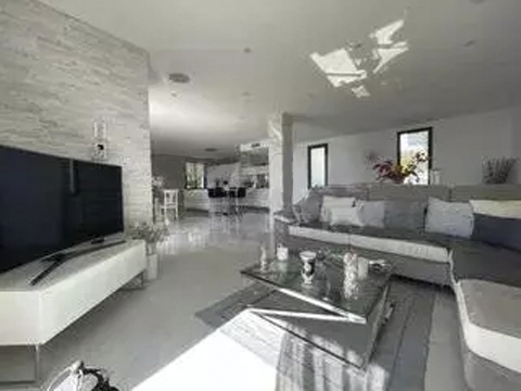 Расположенная в тихом и жилом районе, недалеко от магазинов и пляжей, великолепная вилла в современном стиле на 3 уровнях, состоящая из: