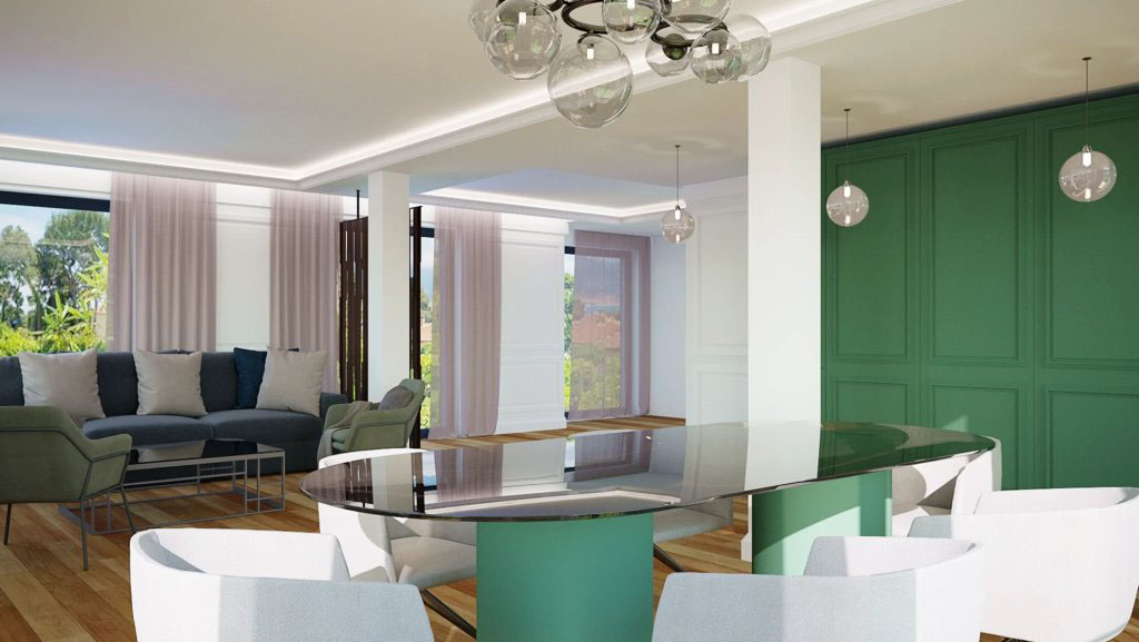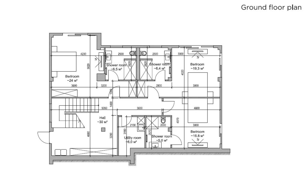 1 гостиная, 1 Столовая, 1 кухня, 4 спальни, 4 душевые комнаты, 2 балкона 16 м², 1 терраса 11 м², 1 туалет.