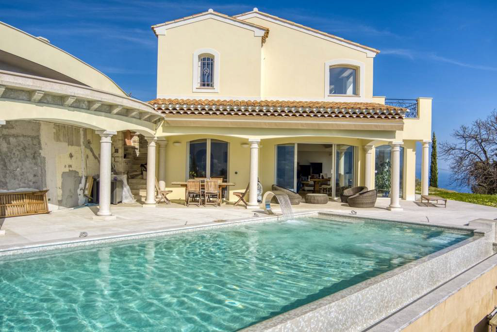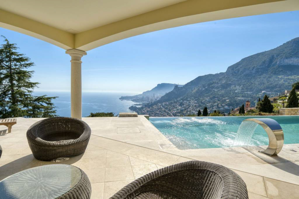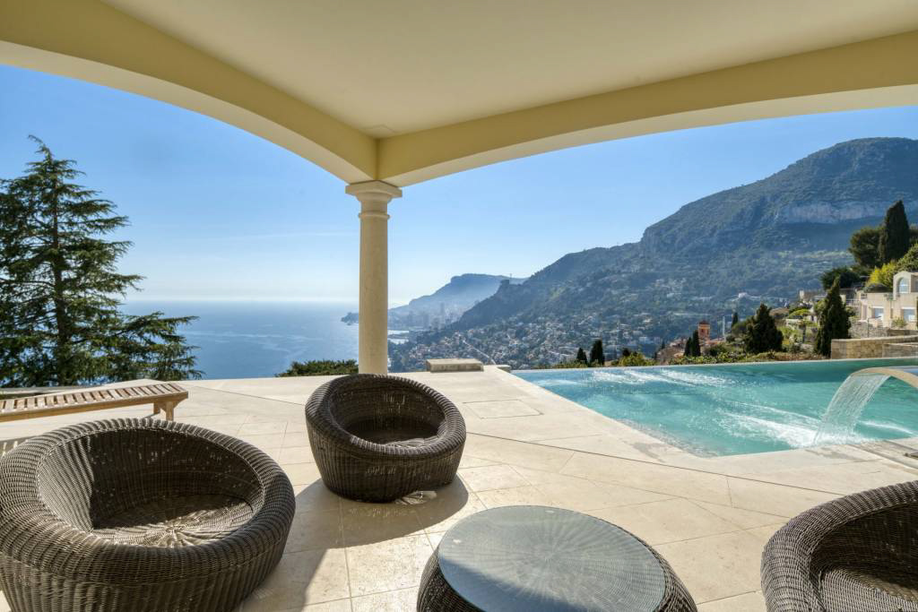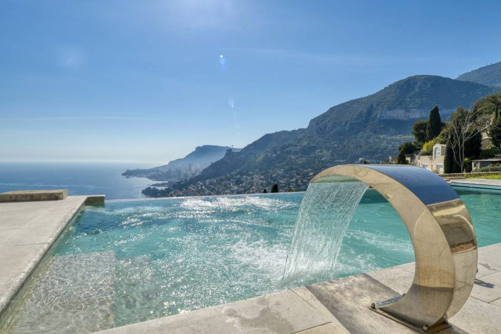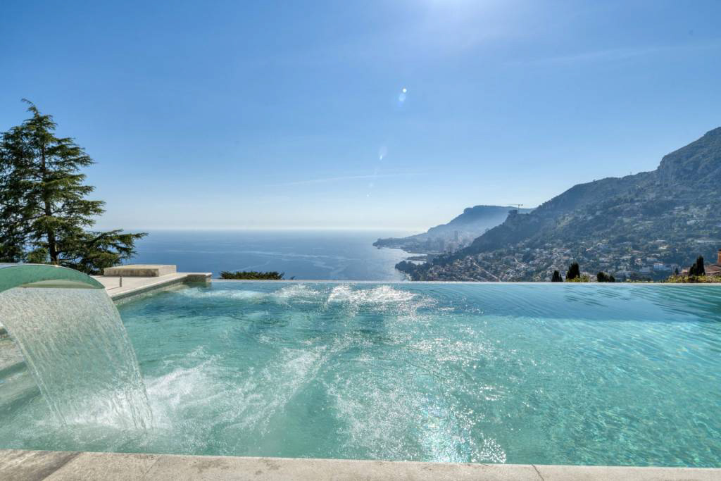 У границы Монако, в исключительном месте, престижная вилла с красивыми объемами, тихая, в самом сердце сада площадью около 1311 м2 с пейзажным бассейном.