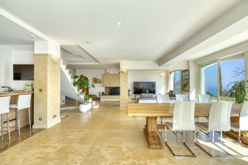 Вилла состоит: двойная гостиная с большими эркерами, из которых открывается вид на море со всех сторон, большая оборудованная кухня открытого плана, две главные спальни с ванными комнатами и гардеробной.