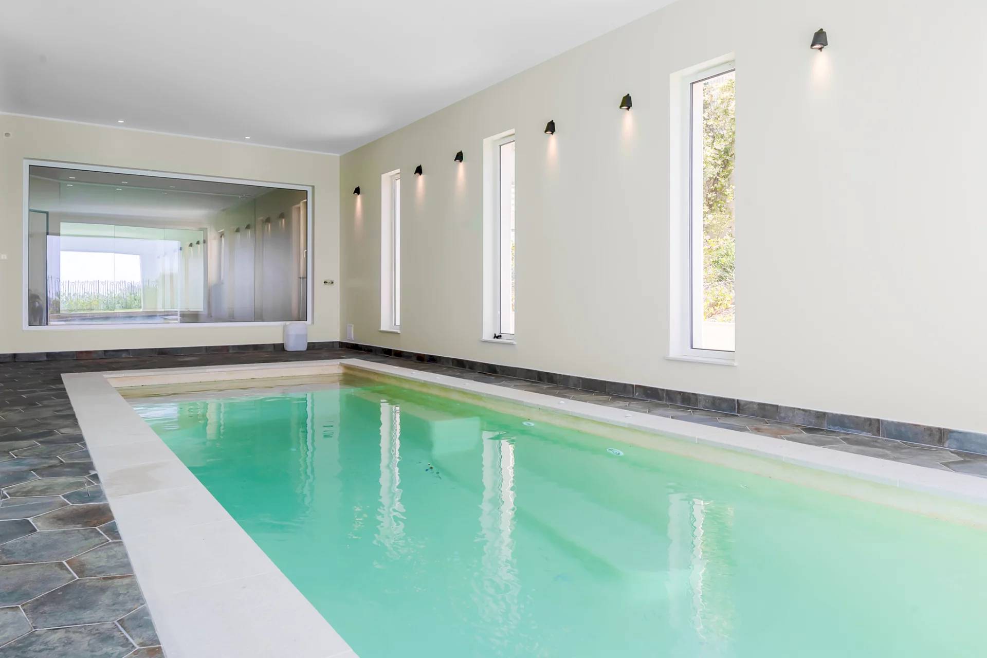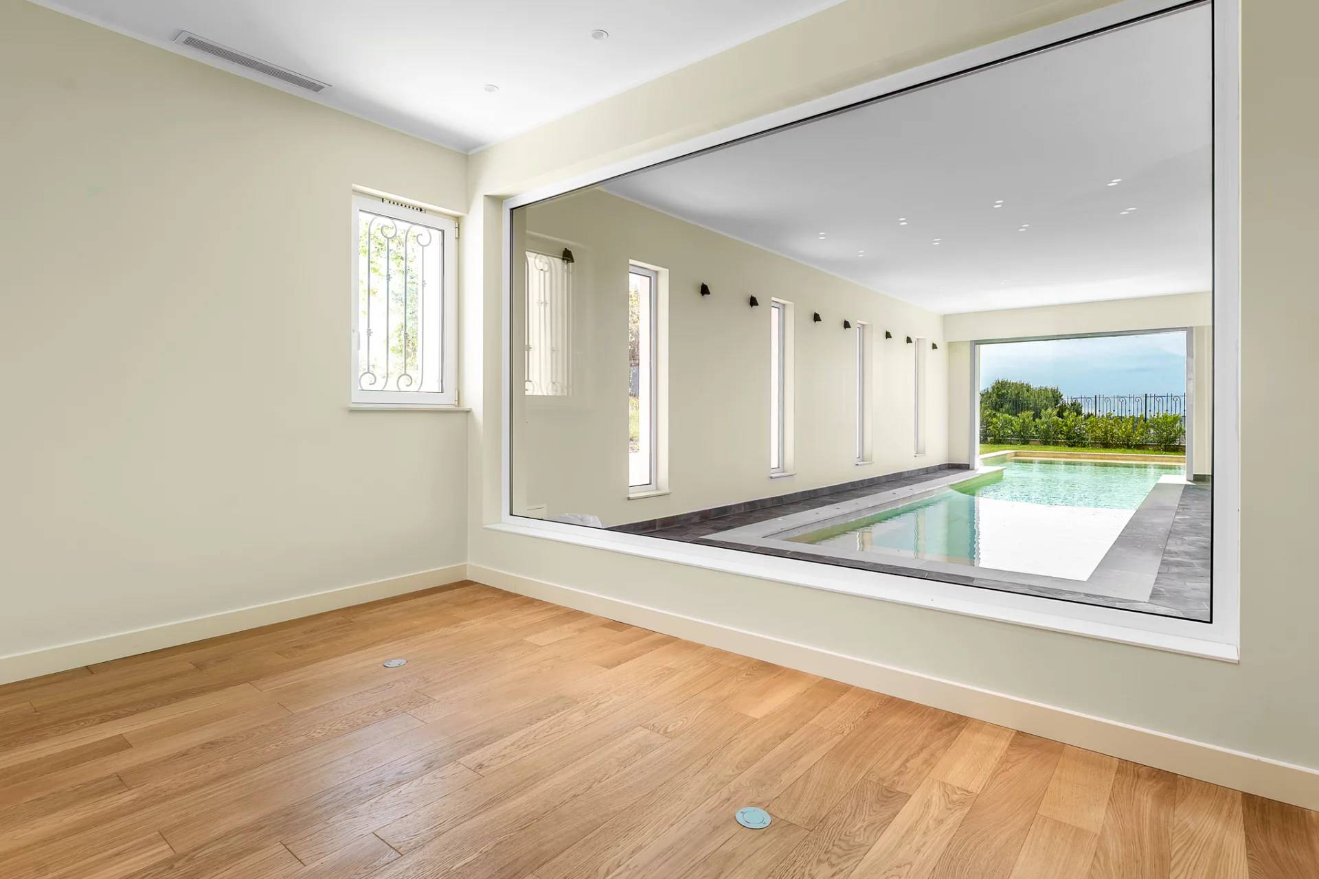 Роскошные удобства, жилая площадь около 450 м2 на 3 уровнях, также есть две небольшие хозяйственные пристройки и тренажерный зал.