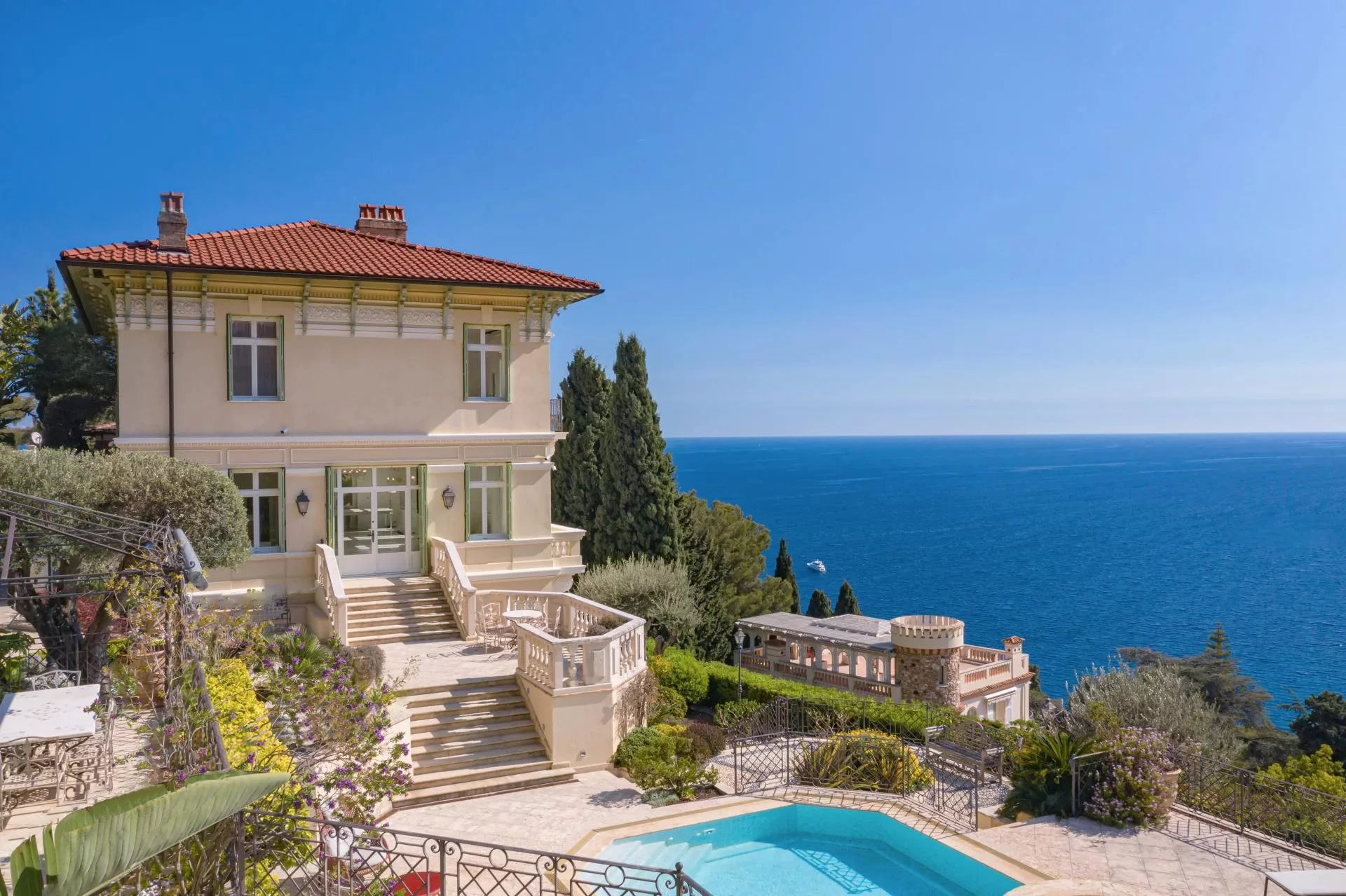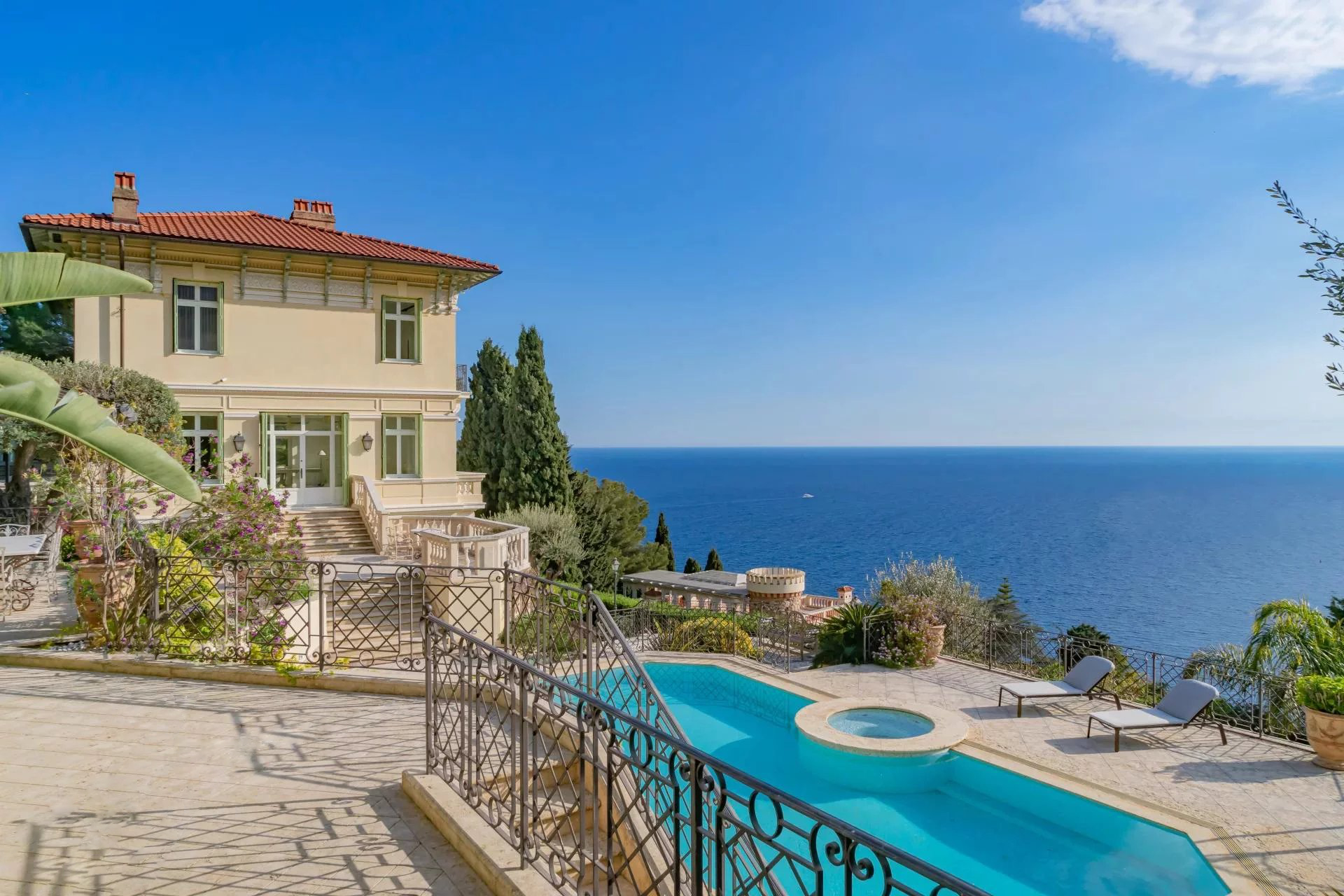 Яркая главная вилла в стиле Бэль Эпок с огромными объемами, с видом на море и Княжество, отдельная квартира с видом на море, дом смотрителя с видом на море, красивый флигель, отдельный спа-центр с массажным кабинетом, сауной, хаммамом и душевыми.