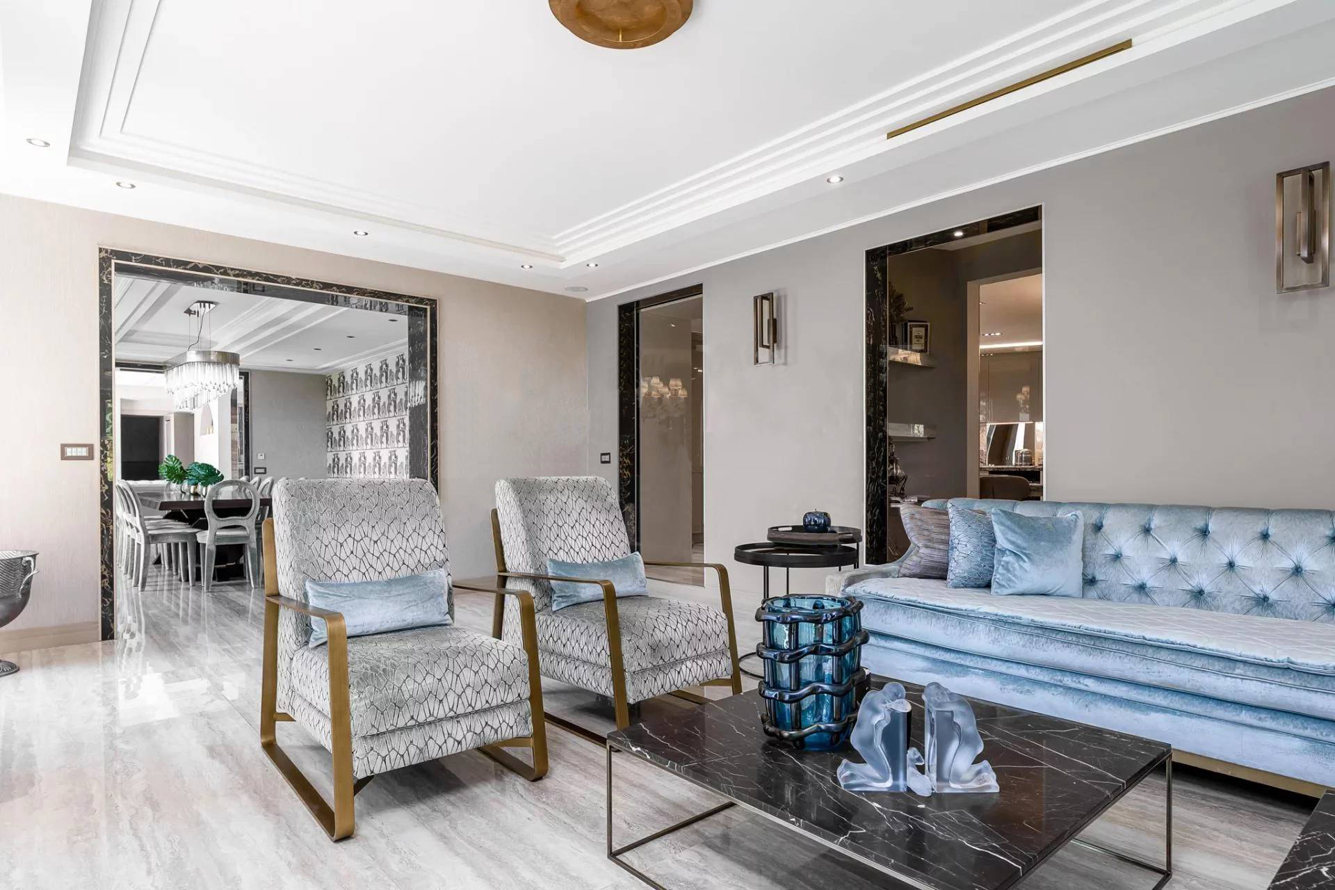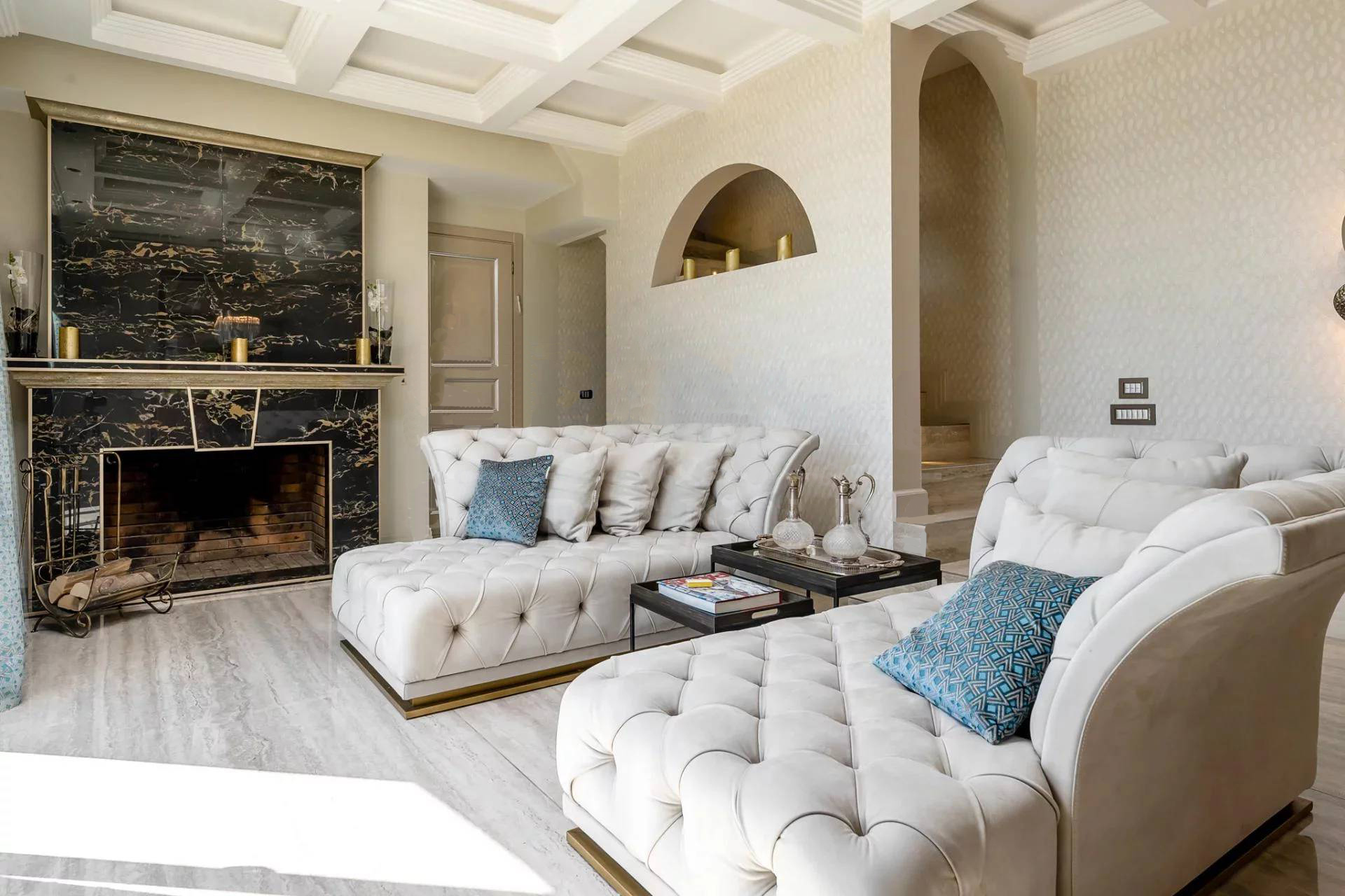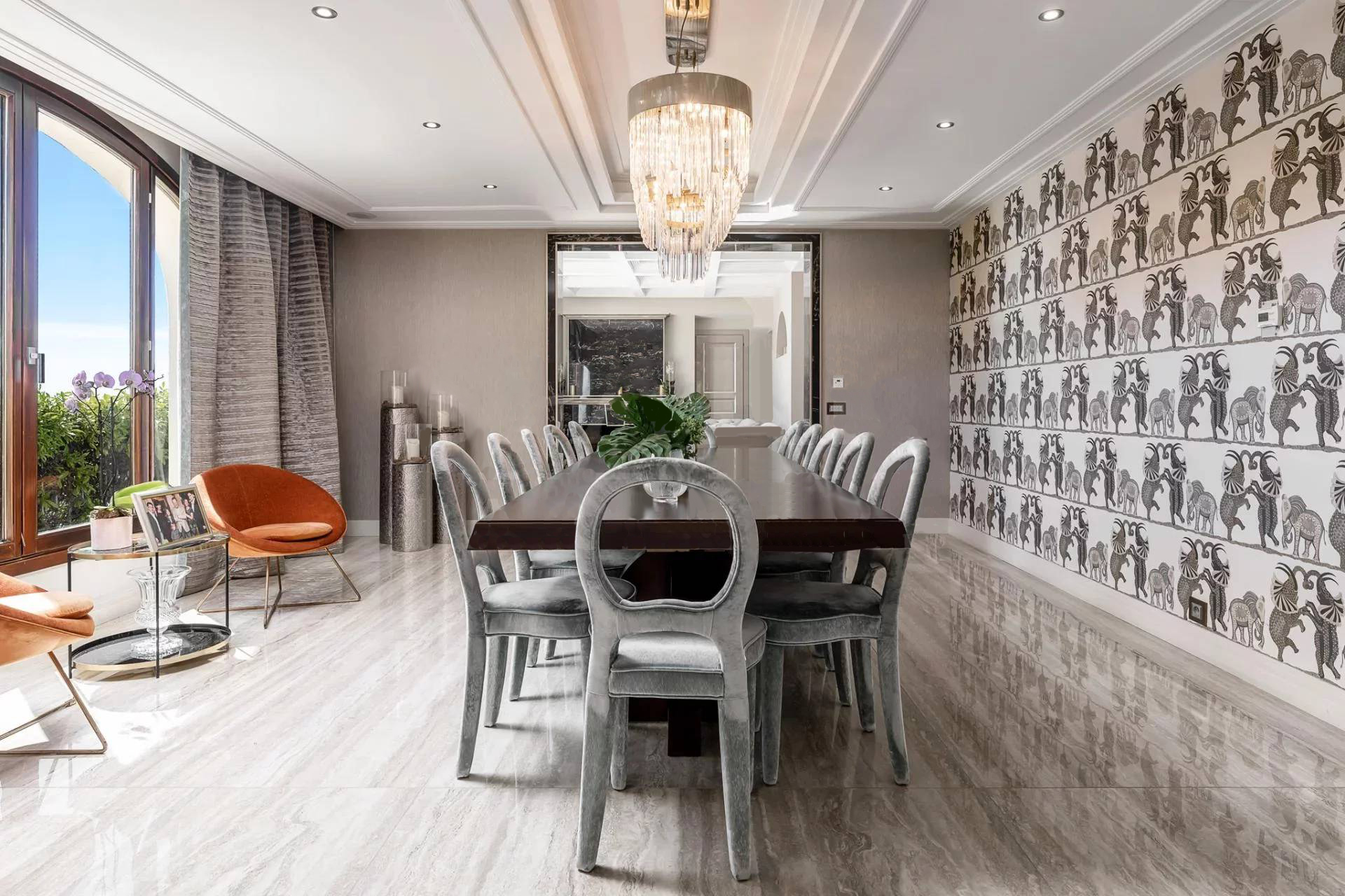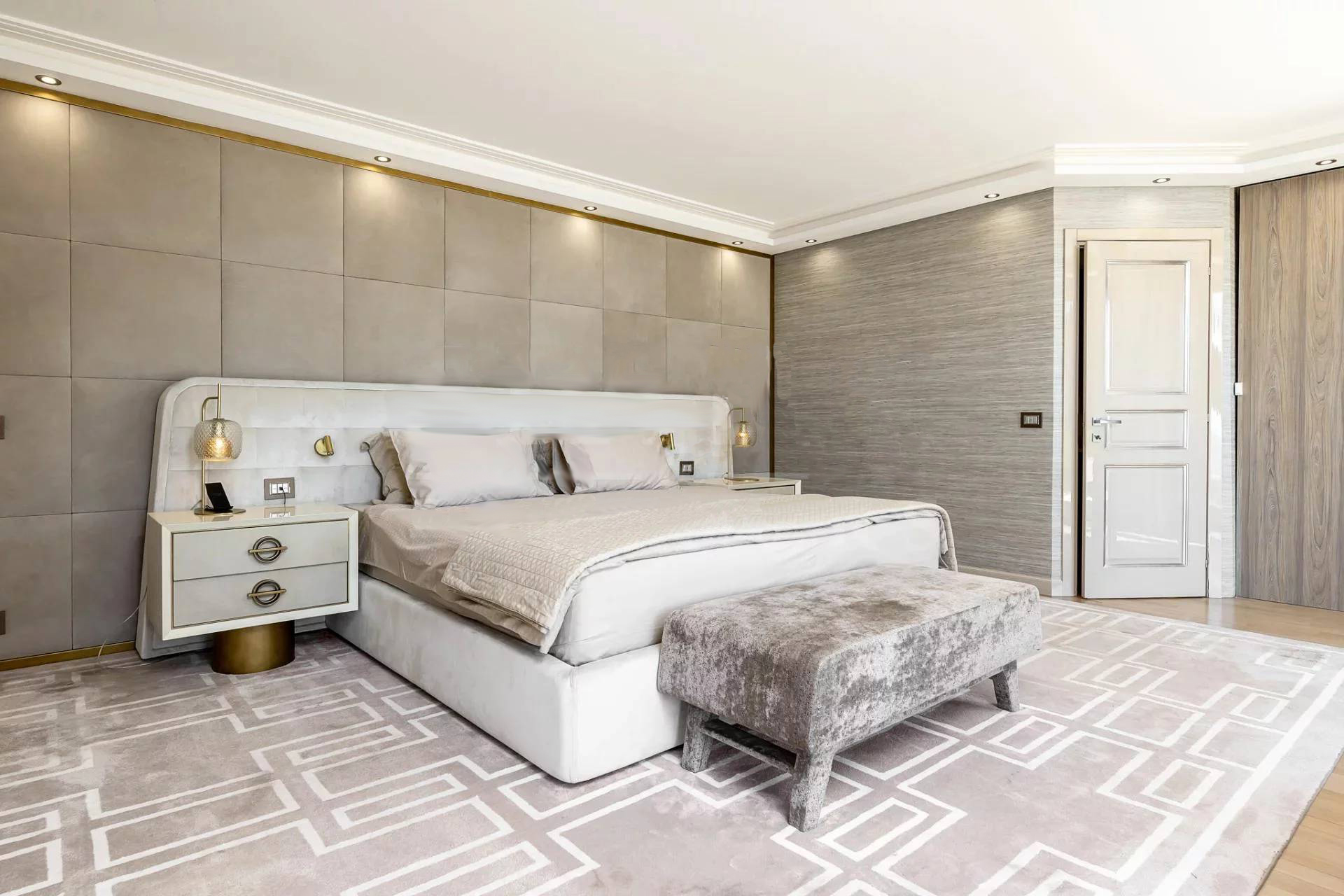 Вилла состоит: гостиная, столовая, кухня, 6 спален, 6 ванных комнат, массажный кабинет, хаммам, солярий, террасы, бассейн. Панорамный вид на море. Кондиционирование воздуха.
