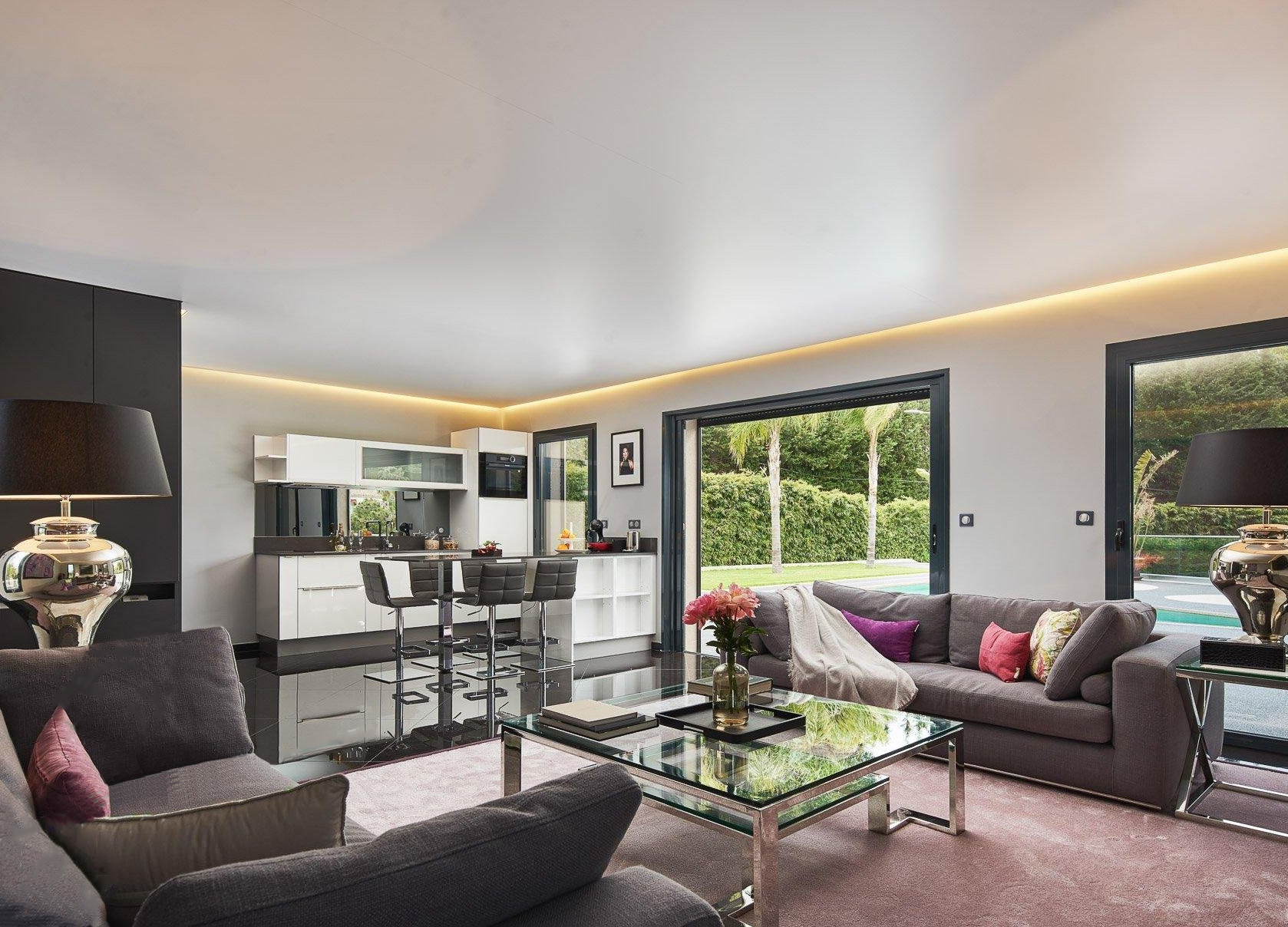 - Гостиная с выходом на большую крытую террасу с видом на горы