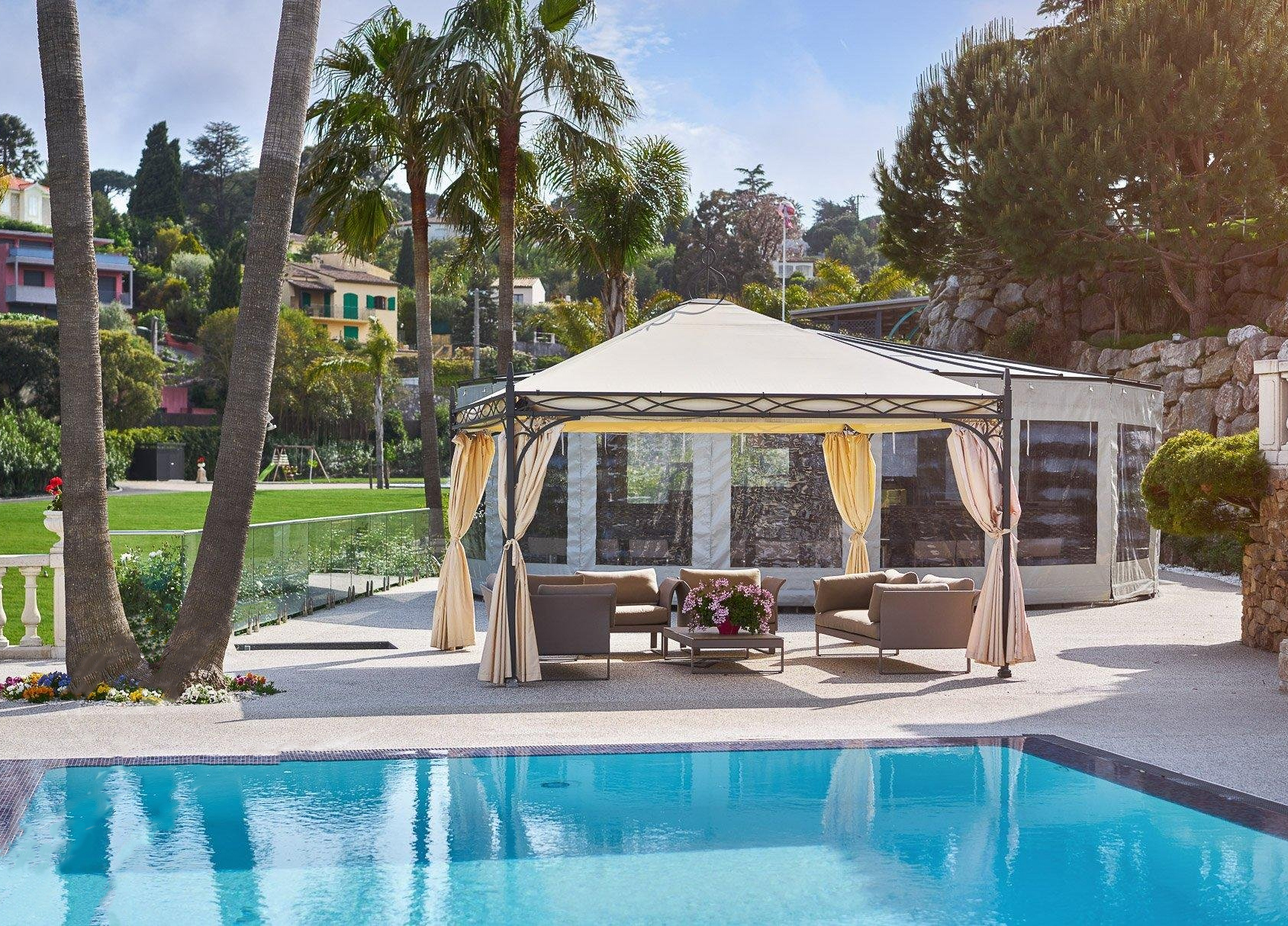 Окруженный великолепными зелеными насаждениями, включая 12 000 м² газонов, деревьев и украшенный многочисленными средиземноморскими видами, парк занимает площадь 20 500 м².