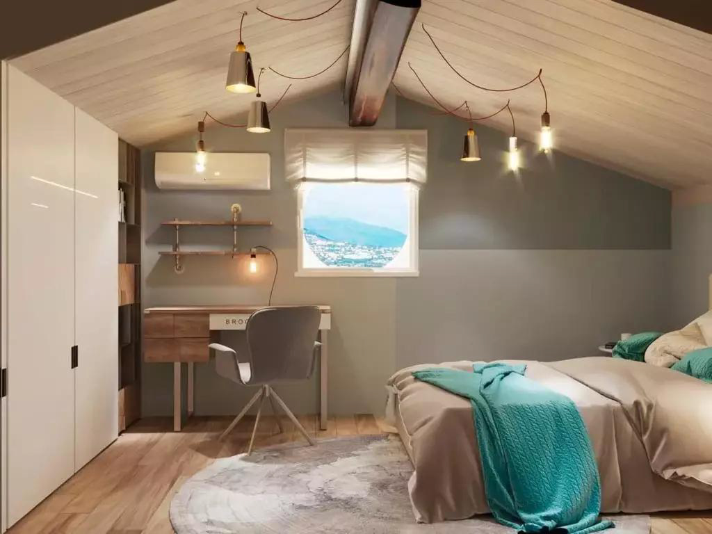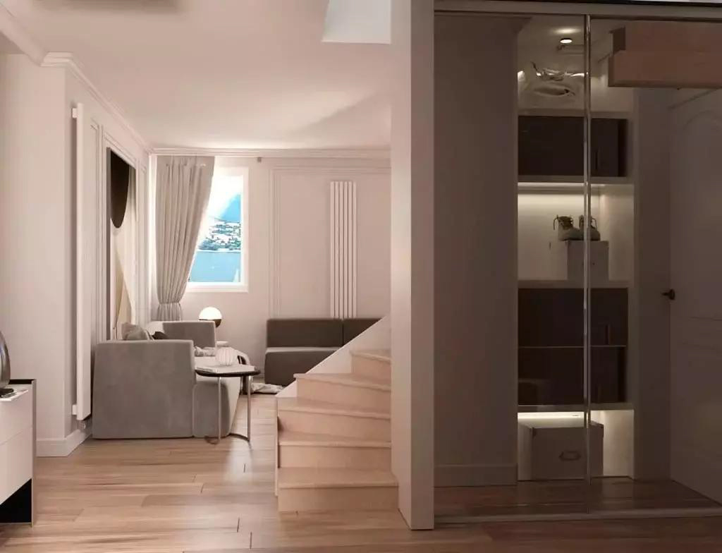 Квартира расположена на верхнем этаже и состоит из двух уровней:
