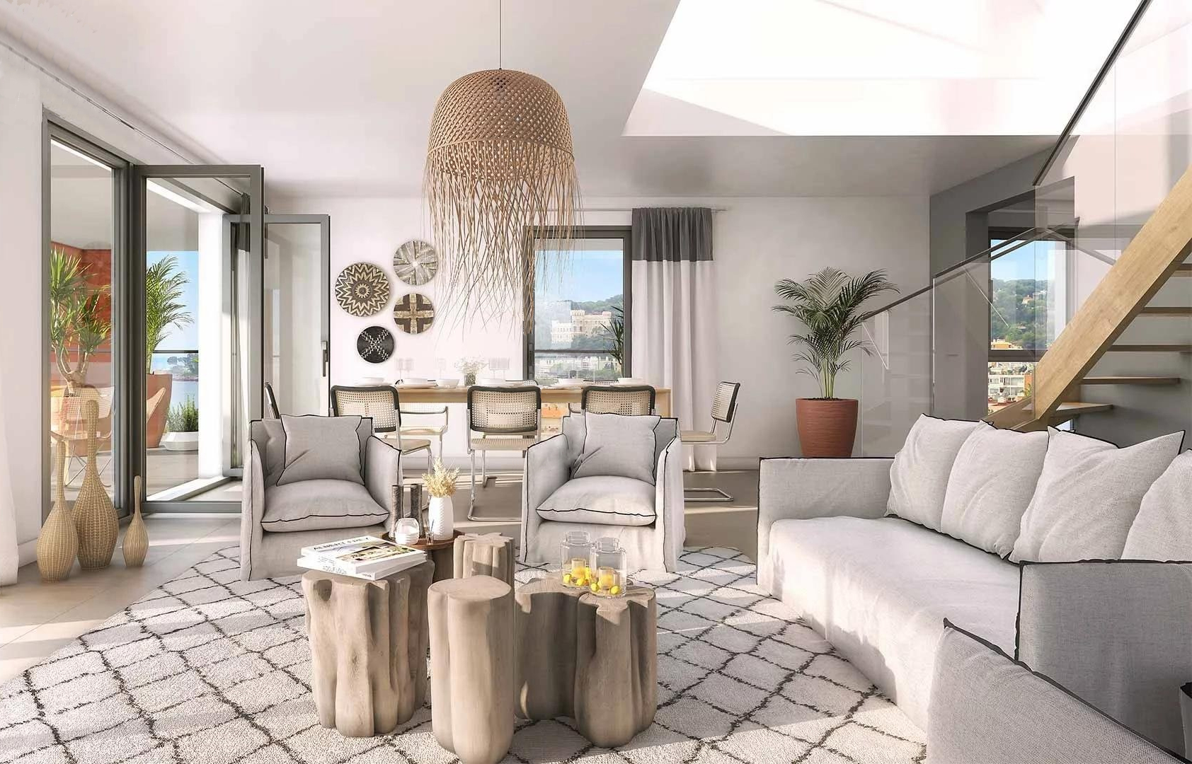 Превосходный угловой 4-комнатный пентхаус с прекрасным видом на море и собственной террасой на крыше, расположенный в самом центре города, рядом со всеми магазинами, в 2 минутах ходьбы от пляжей, в тихом месте на набережной Кап-Мартен.