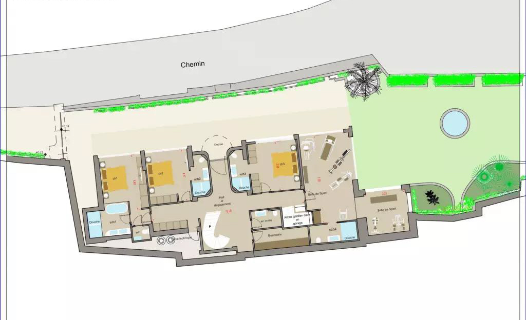 - Уровень сада: 4 спальни, 4 ванные комнаты с туалетом