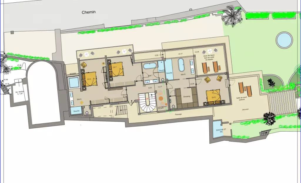 - 2-й этаж: 3 главные спальни с 3 душевыми комнатами с туалетом