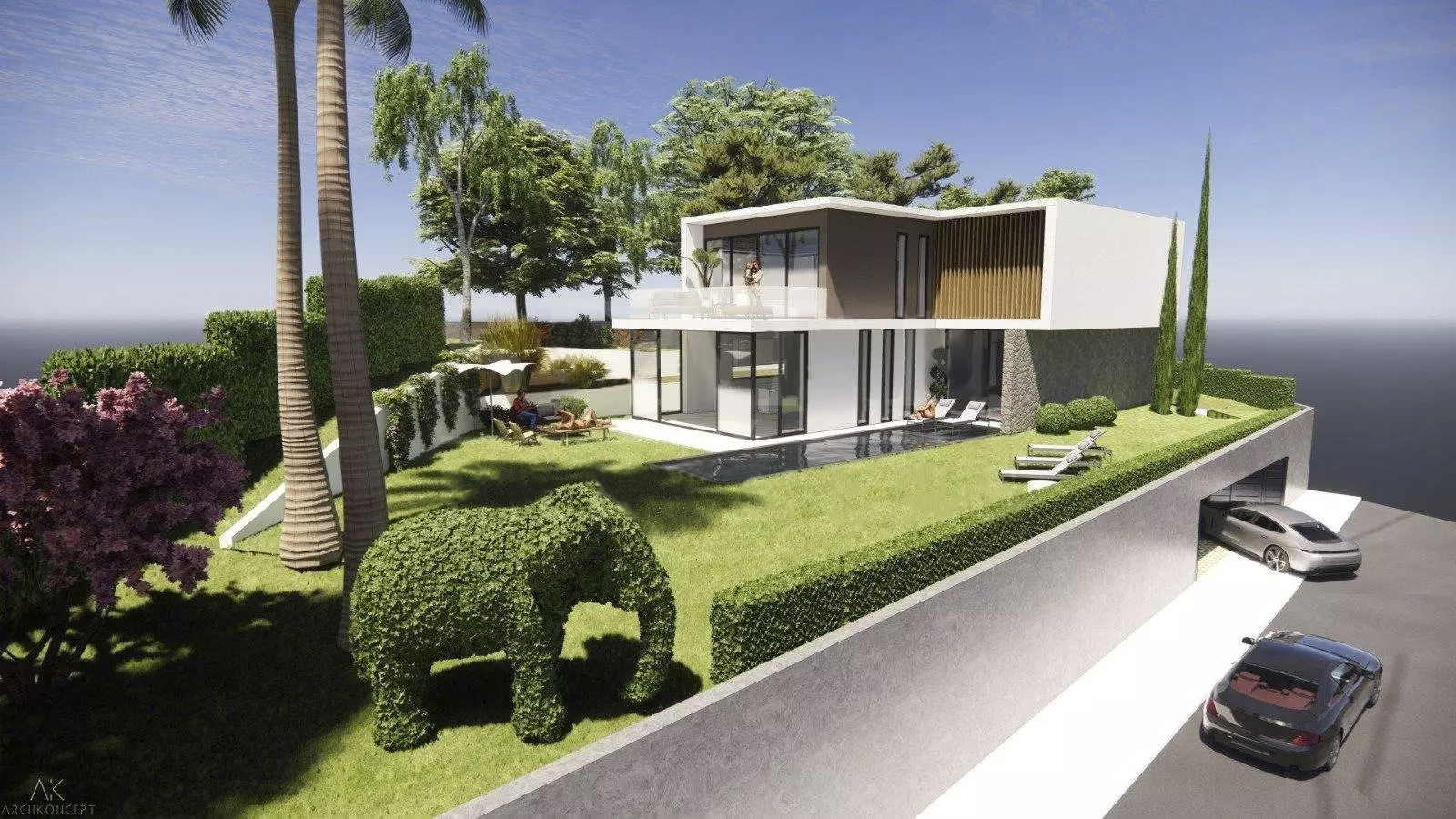 В тихом районе, всего в нескольких минутах от Монако, современная каменная вилла с бассейном, окруженная средиземноморской растительностью с захватывающим видом на море, расположена в частном владении.