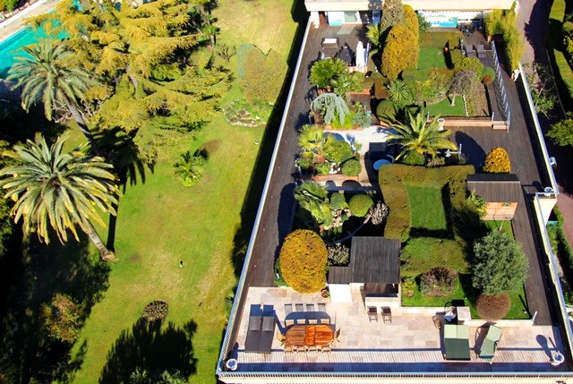 Терраса из дерева тек с великолепным видом на бухту города Канны и окрестности.
