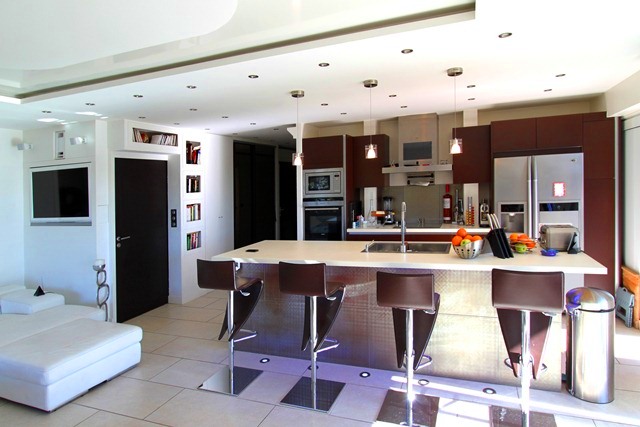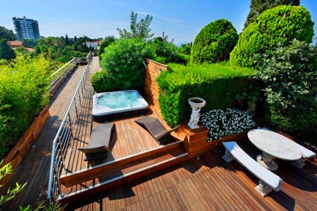 Терраса оборудована джакузи, автоматической поливкой и летней кухней с барбекю.