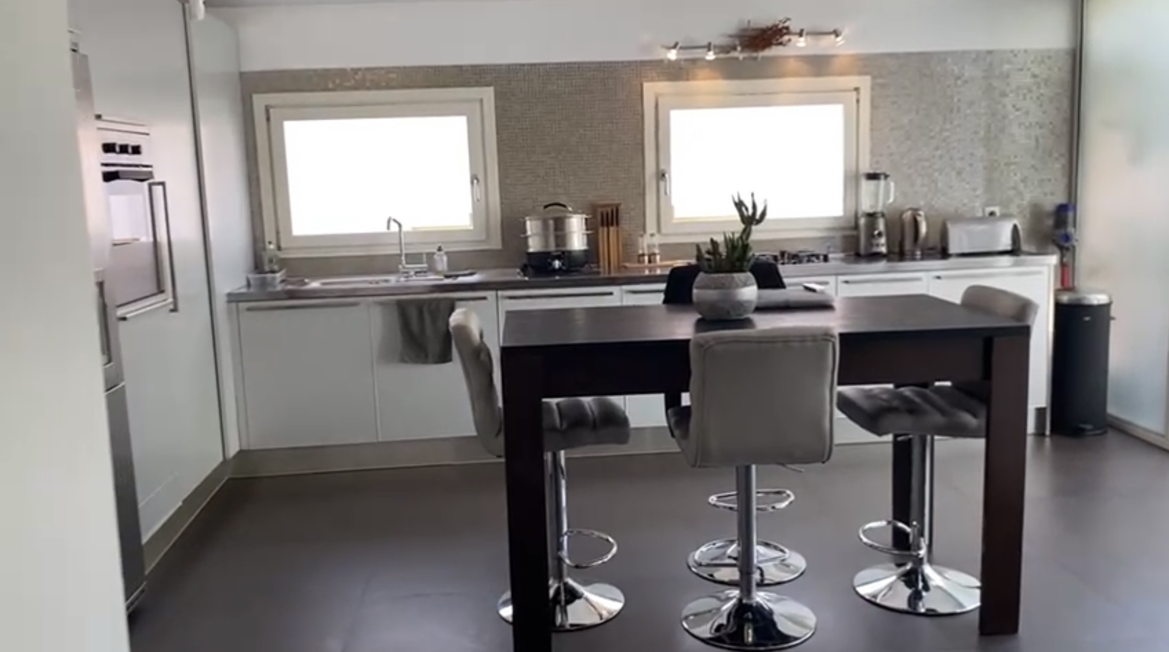 Лофт имеет красивые потолки высотой 4,30 м и состоит из просторной гостиной и оборудованной кухни с выходом на просторную террасу. Спальня с собственной ванной комнатой, еще одна спальня с ванной комнатой, душевой и гардеробной, а также большой кабинет. Квартира оборудована теплыми полами и реверсивным кондиционером. Счетчики воды, электричества и газа не зависят от счетчиков кондоминиума. Гараж с отдельным входом.