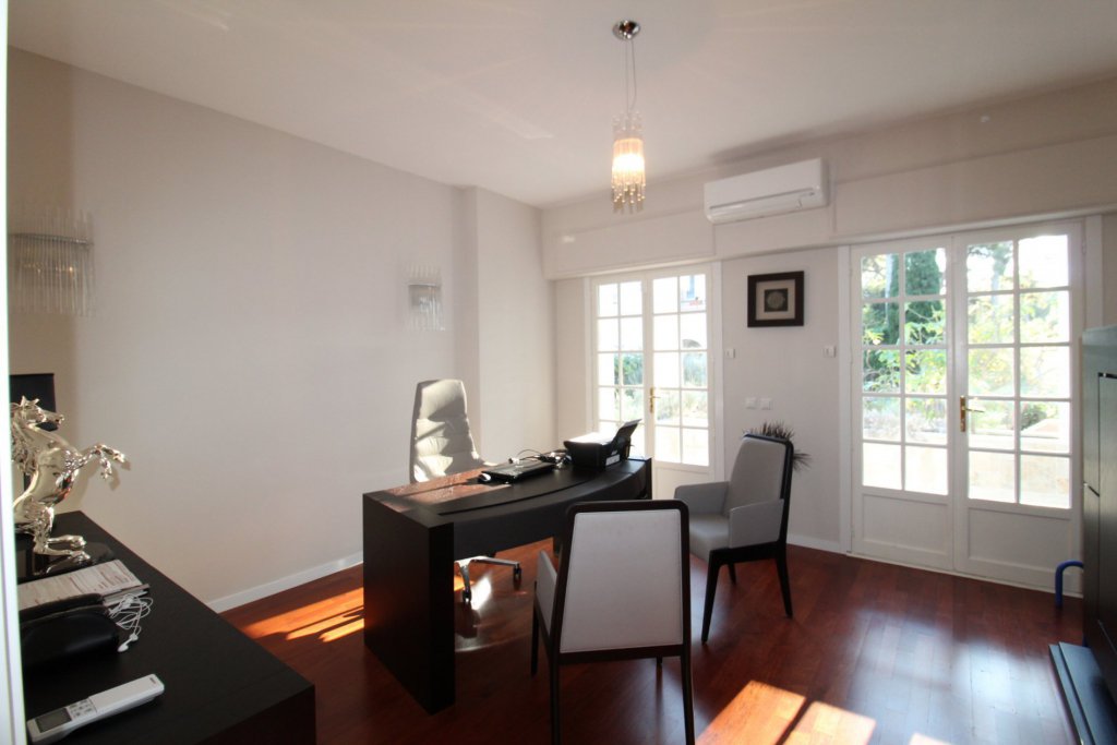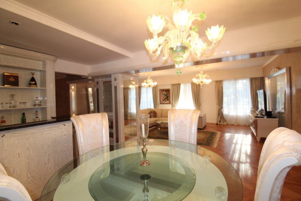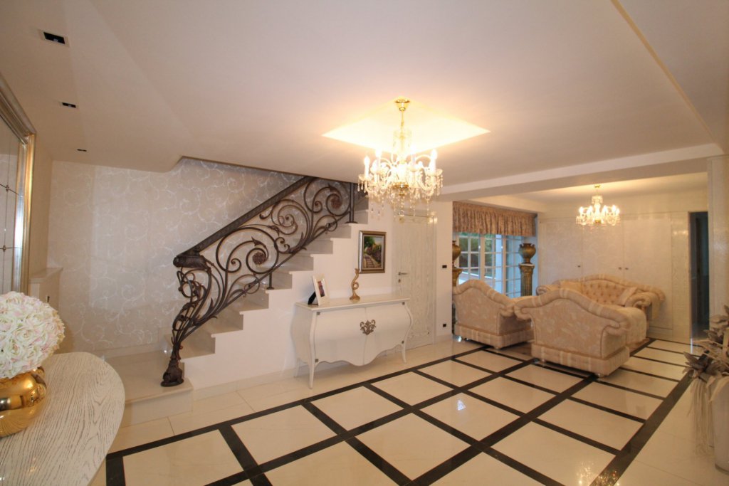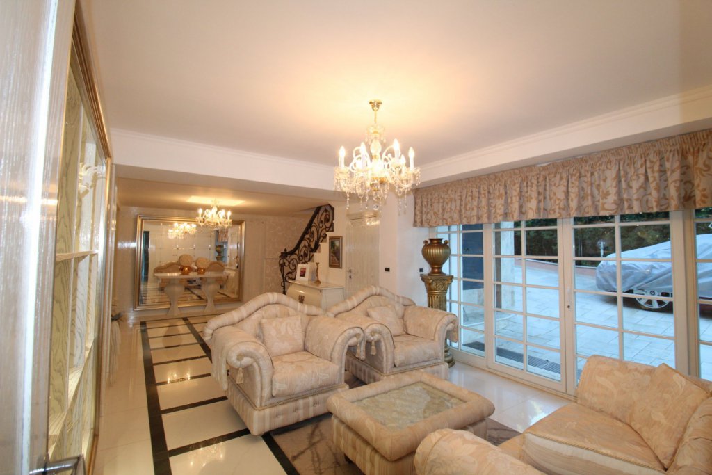 На первом этаже большая гостиная, открытый бар, кабинет, 2 спальни, 2 ванные комнаты.