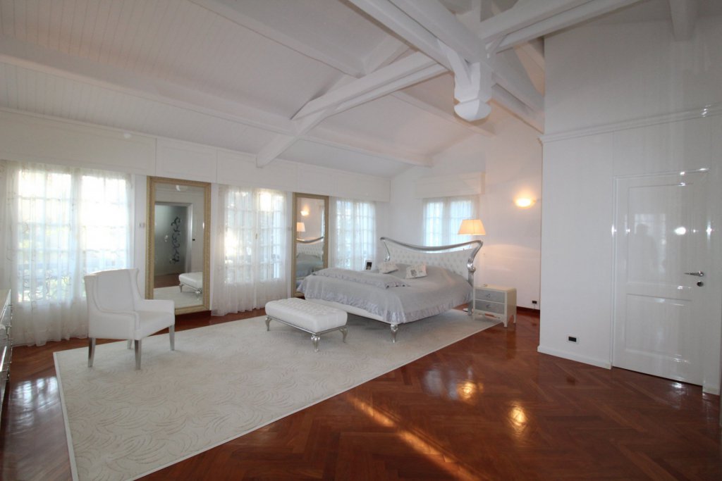 На последнем этаже большая главная спальня с ванной комнатой и большой гардеробной.
