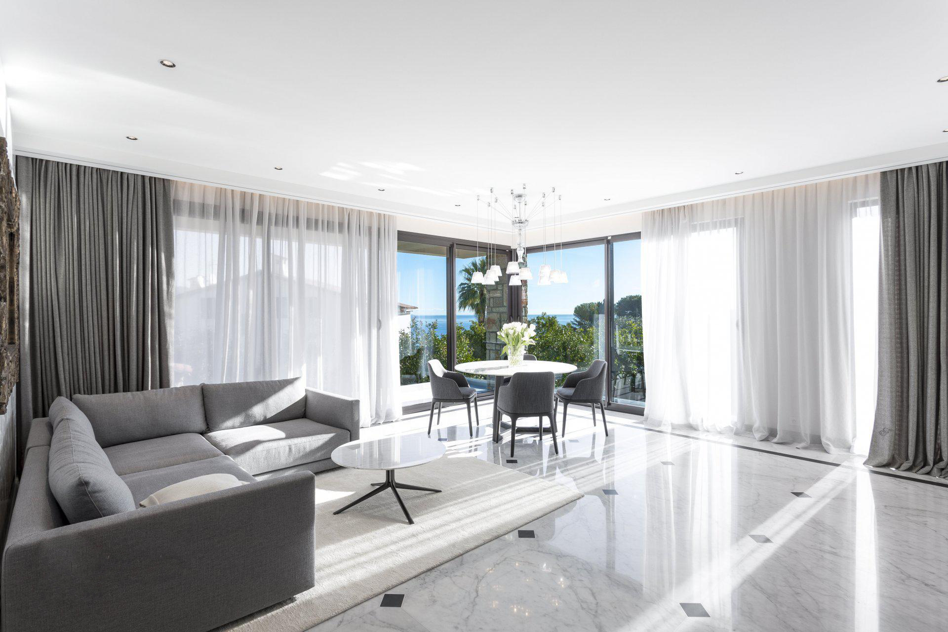 Вилла состоит из холла, просторной гостиной-столовой, оборудованной кухни открытой планировки и трех спален с ванными комнатами.