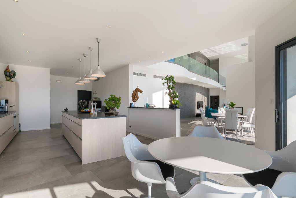 Вилла обладает большими объемами с жилой площадью около 360 м2, включая 4 спальни и гостиную с очень высокими потолками, чтобы насладиться панорамой моря.