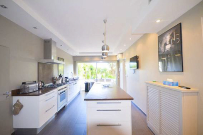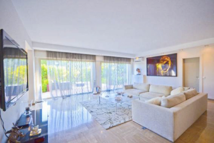 Квартира расположена в небольшой, охраняемой резиденции, в районе Калифорния, с бассейном и садом. Имеет прекрасный вид на море.