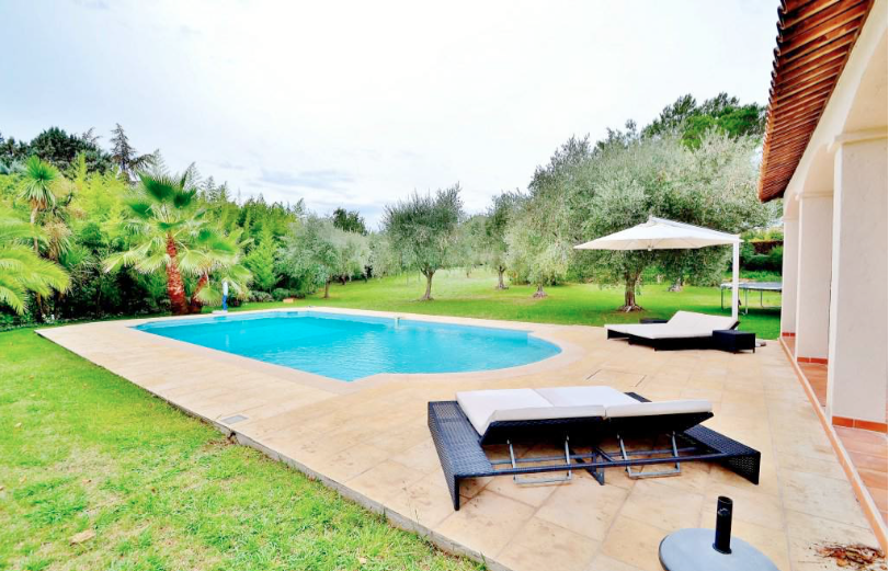 Плоский ландшафтный парк площадью 4800 кв. м. с оливковой рощей и фруктовыми деревьями. Гараж примыкает к кухне, также имеется много места для парковки.