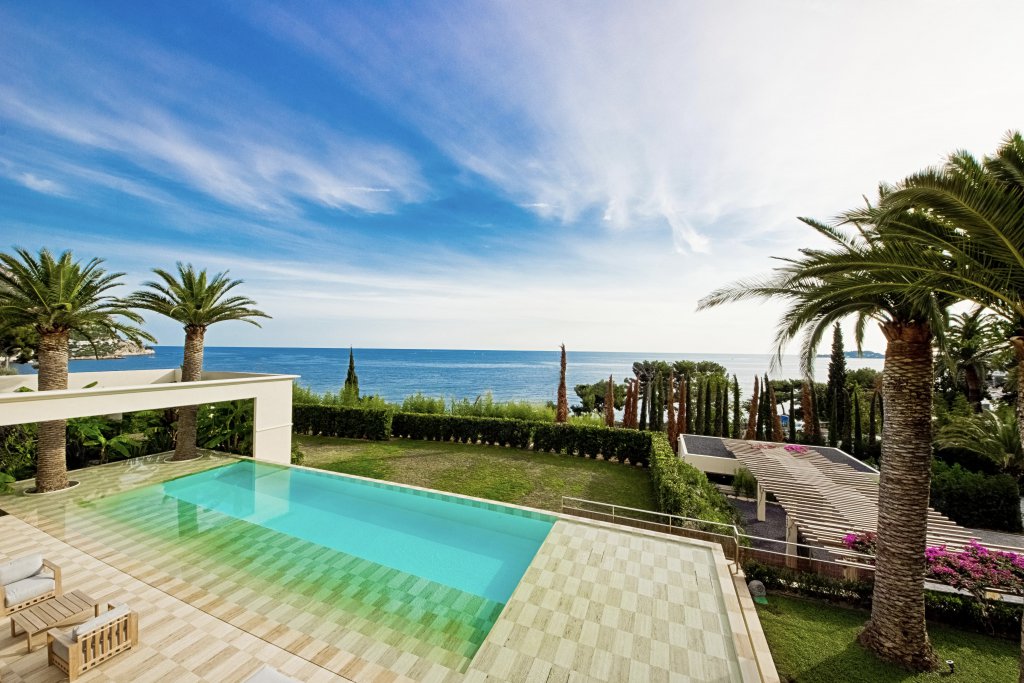 Сенсационная недвижимость с видом на море около 1000 м2 с пышным садом площадью почти 6000 м2, всего в 10 минутах езды на машине от центра Монако и в нескольких минутах ходьбы от пляжа.