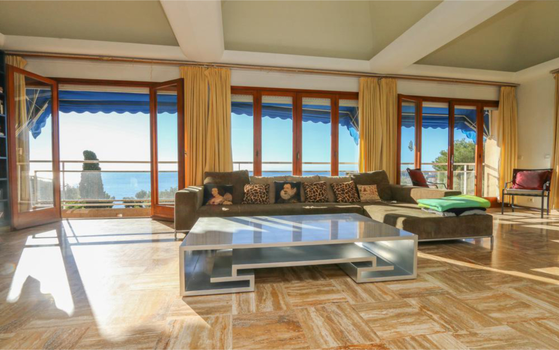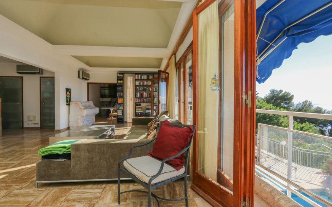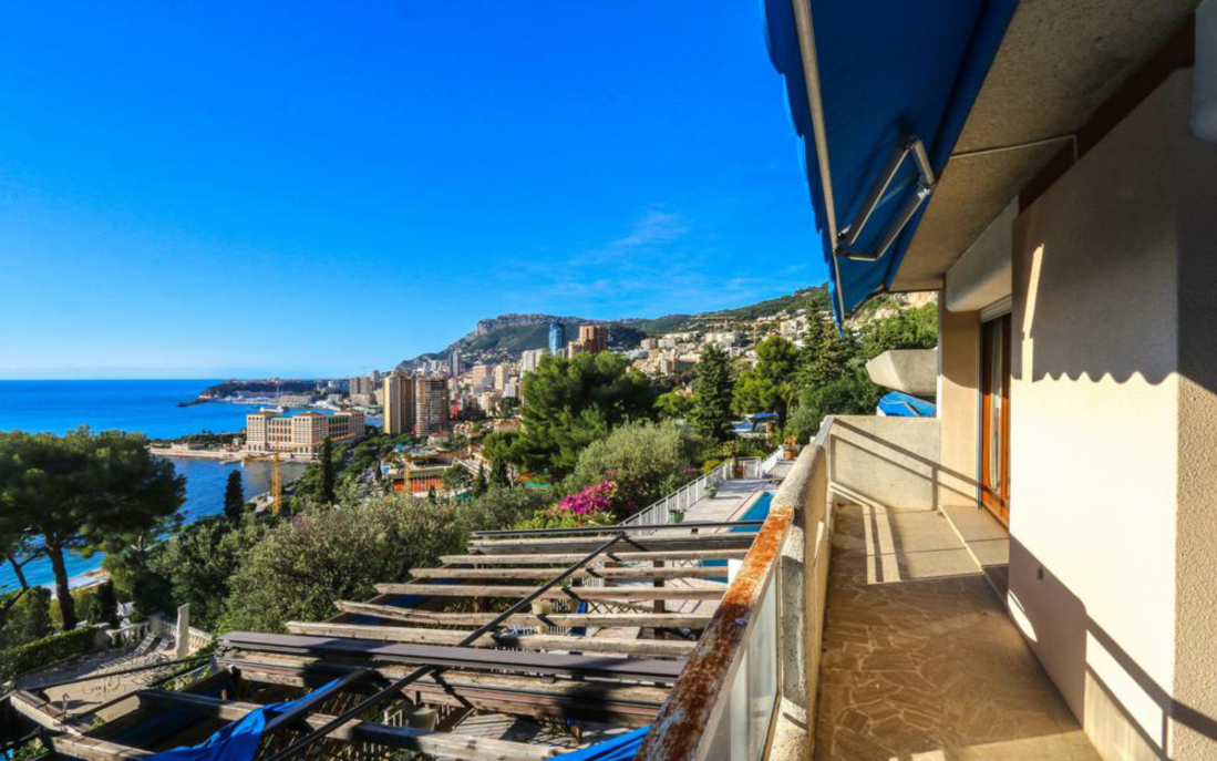 Вилла состоит: на верхнем этаже находится гостиная открытой планировки с обеденной зоной на террасе с видом на Монако и море, отдельная кухня, две спальни с ванными комнатами, выходящими на террасу, на первом этаже две спальни и ванная комната.