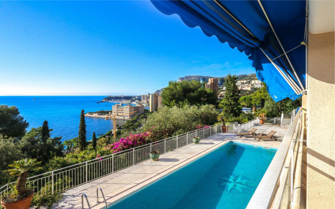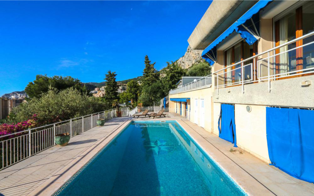 Современная вилла на двух уровнях с бассейном имеет исключительное расположение у въезда в Монако, в эксклюзивном закрытом имении с видом на Monte-Carlo Beach Club and Country Club.
