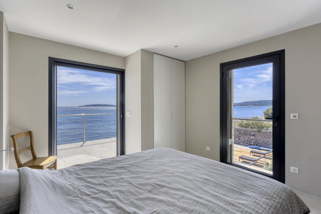 Эксклюзивность, исключительное расположение на берегу моря для этой со вкусом отреставрированной современной виллы.