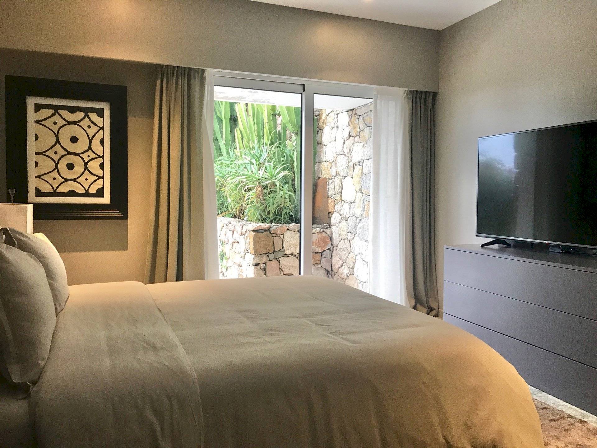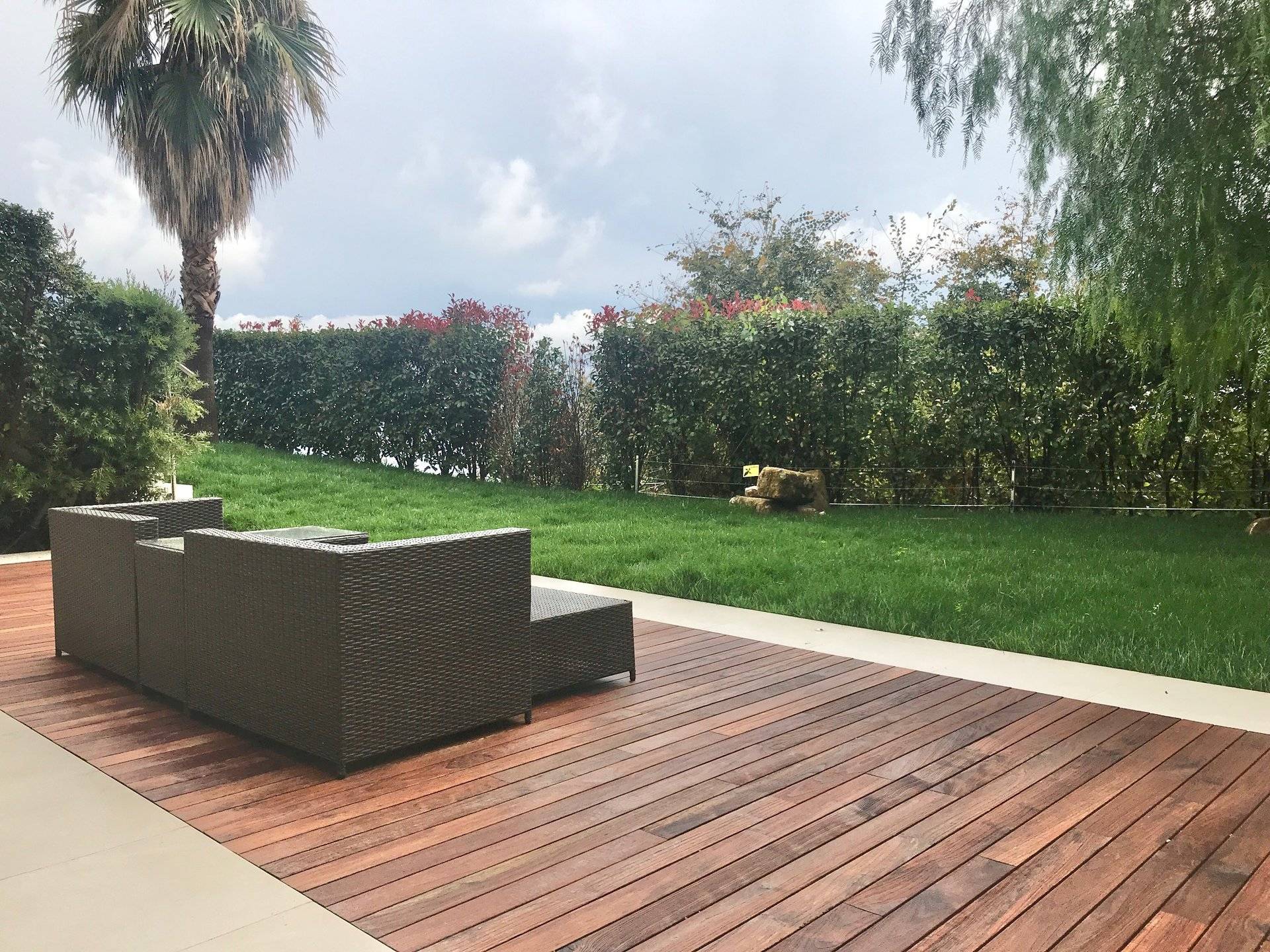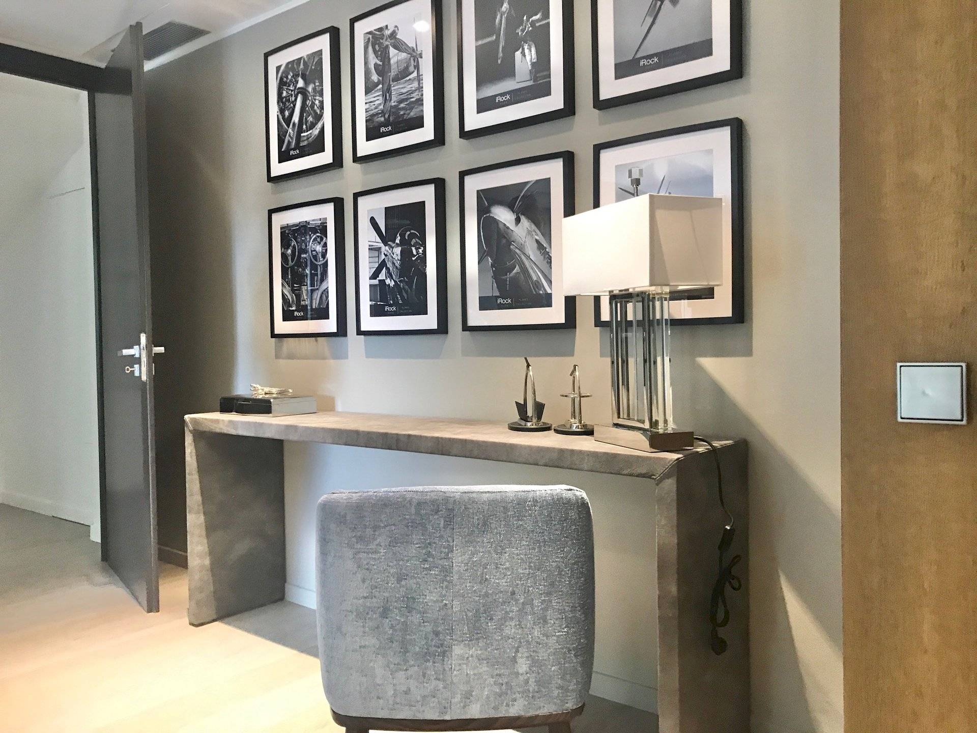 Состоит: на первом этаже прихожая, большая спальня с душевой и гардеробной, кабинет, на уровне сада просторная гостиная, столовая и оборудованная кухня, гостевой туалет, терраса с бассейном, джакузи и сад.