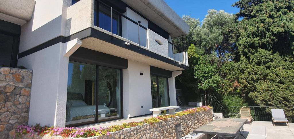 Эта современная вилла с видом на юг была спроектирована в бруталистическом архитектурном стиле, отмеченным архитектурными наградами CH IVALDI ARCHITECTE D.P.L.G. «Первый Гран-при Рима» 1964 года, и является шедевром архитектуры с ультрасовременным интерьером.