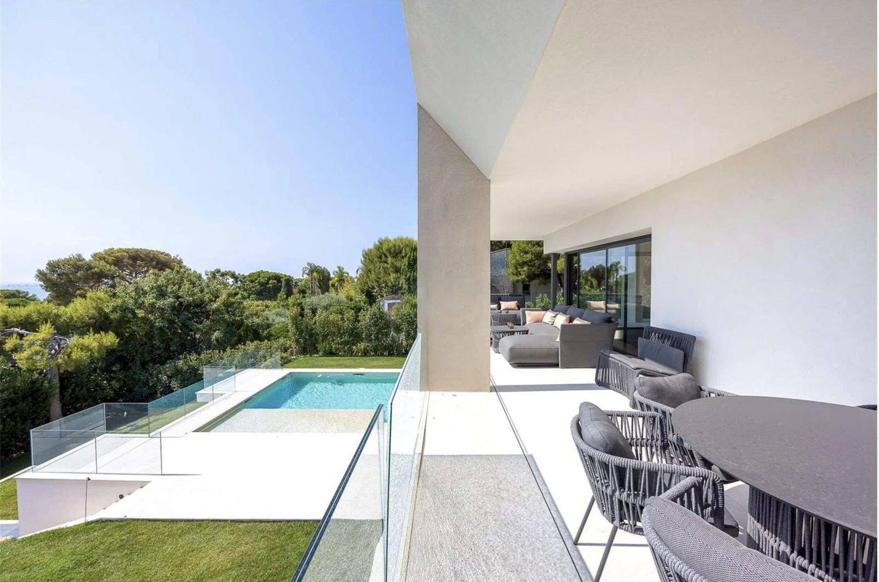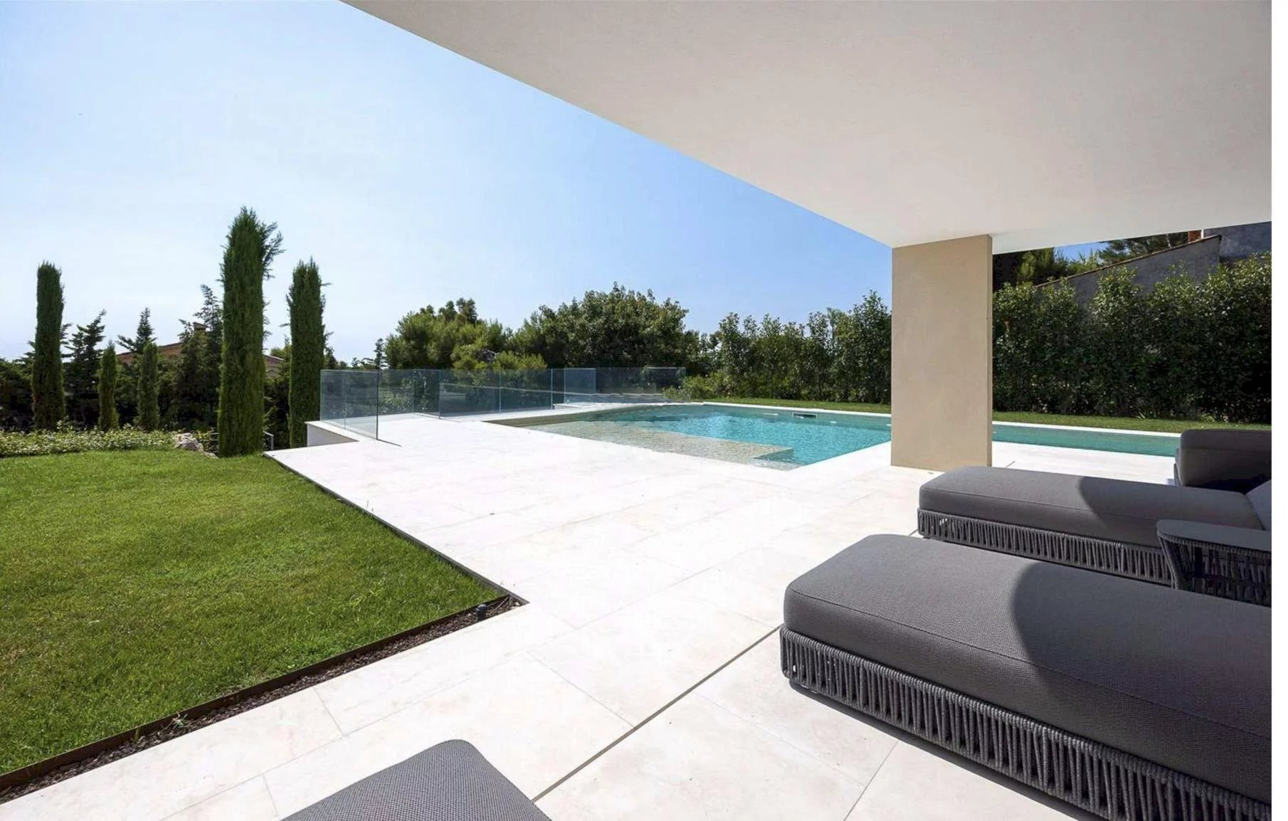 Современный дом площадью 370 м² с прекрасным видом на море, идеальный дом для приема семьи и друзей. Из приемных и спален открывается прекрасный вид на море и ландшафтный сад.
