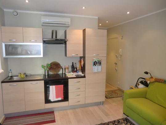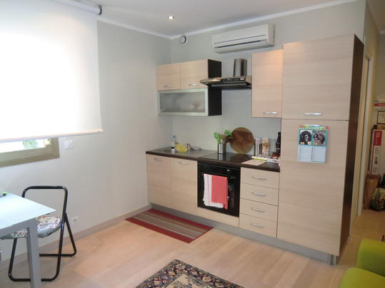 Квартира в очень хорошем состоянии, полностью отремонтирована и меблирована, оснащена кондиционером и состоит: прихожая с большим встроенным шкафом, светлая гостиная, современная оборудованная мини-кухня, очень хорошая душевая комната с окном.