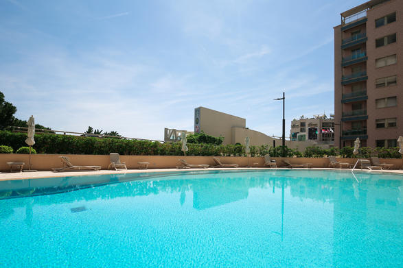 Идеально расположенный между Казино и пляжами Ларвотто, в престижной резиденции с круглосуточной охраной, бассейном, пулхаусом, фитнес-центром и сауной.