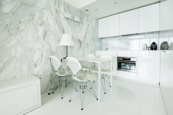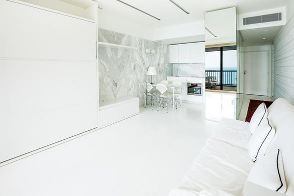 Эта квартира была роскошно отремонтирована в современном стиле от известного архитектора и состоит: прихожая, гостиная с выходом на террасу, полностью оборудованная кухня с выходом в гостиную. Полностью мраморная ванная комната.