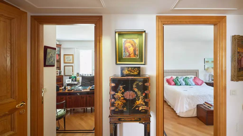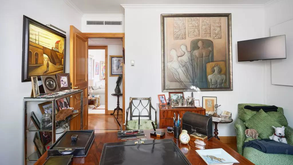 Квартира в очень хорошем состоянии, имеет большие жилые помещения и состоит: вестибюль, гостиная, кухня, гардеробная, главная спальня с ванной комнатой, две спальни с душевыми комнатами, а также два гаража и подвал.