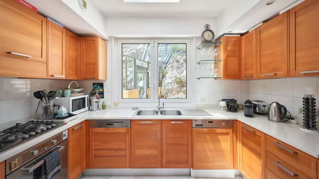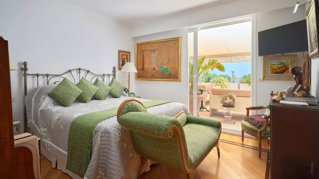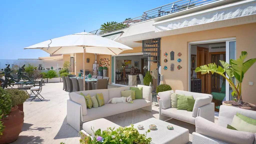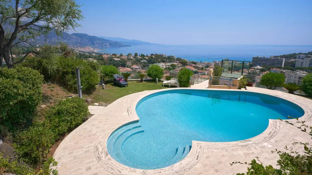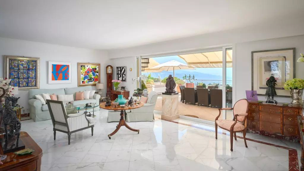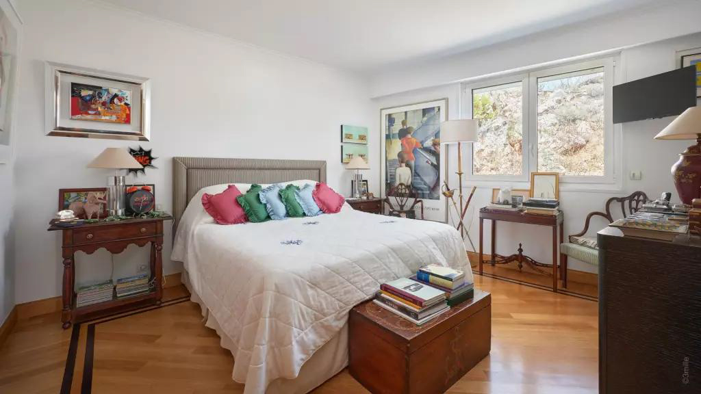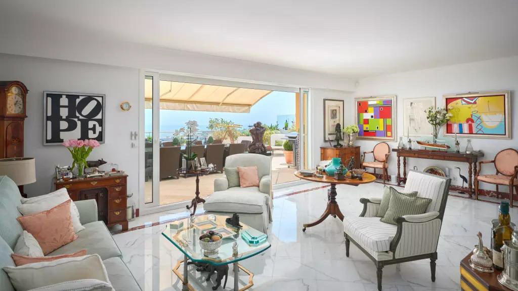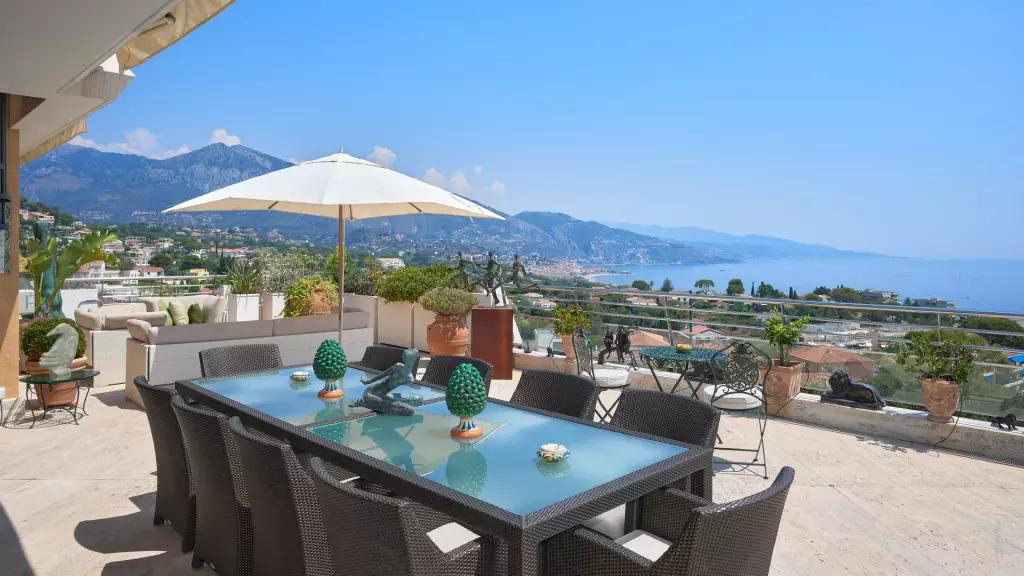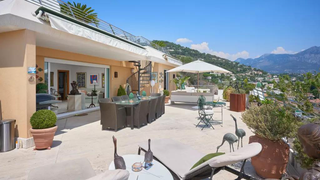 В небольшой роскошной резиденции с бассейном, в нескольких минутах от Монте-Карло, его ресторанов и пляжей, великолепная двухуровневая квартира площадью 112 м² предлагает панорамный вид на море с террасы площадью более 100 м², а также террасу на крыше.